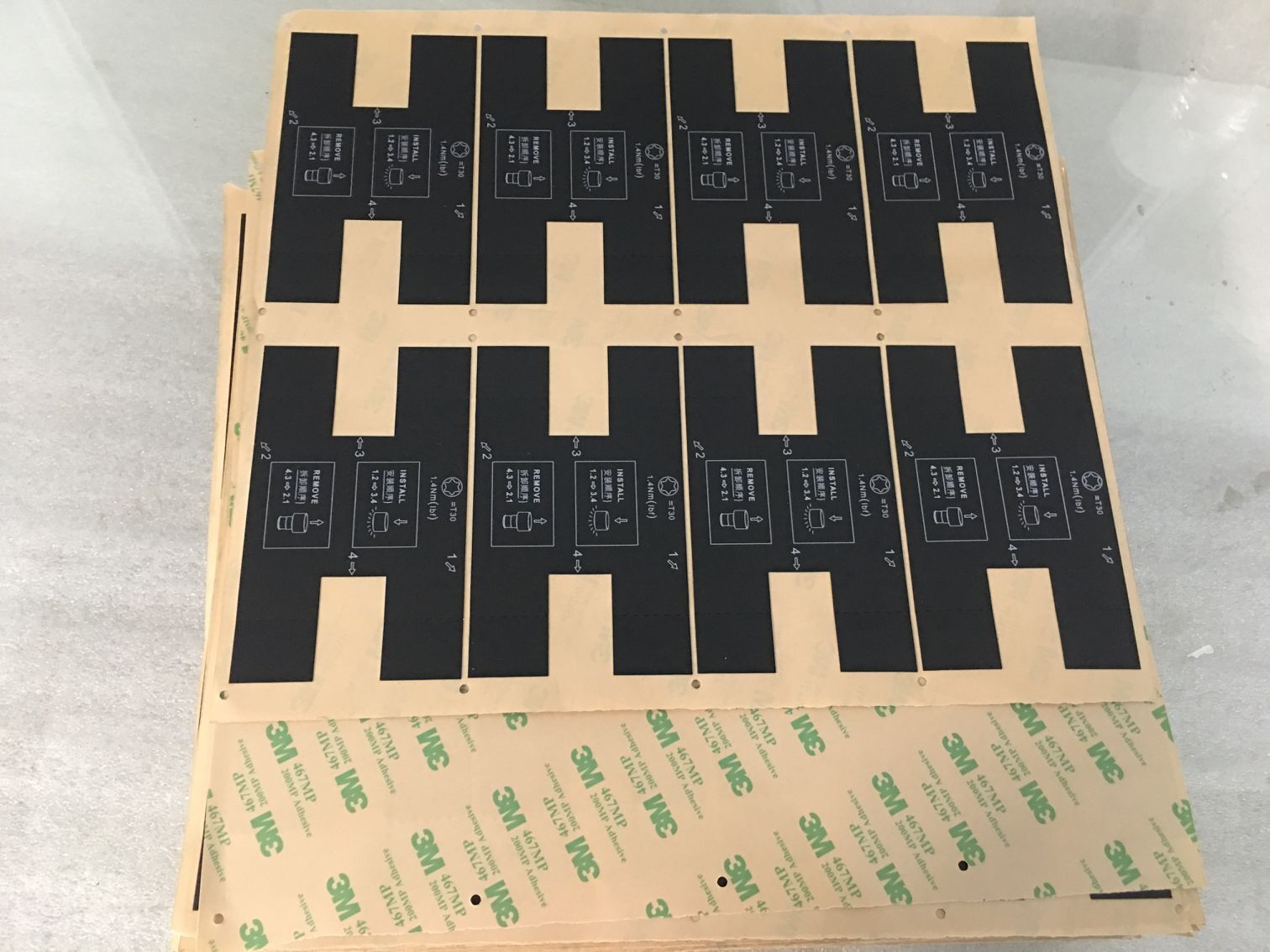 3M467MP对塑料和金属片有较强的粘接强度,适用于柔性线路板,薄膜开关,电子标牌,